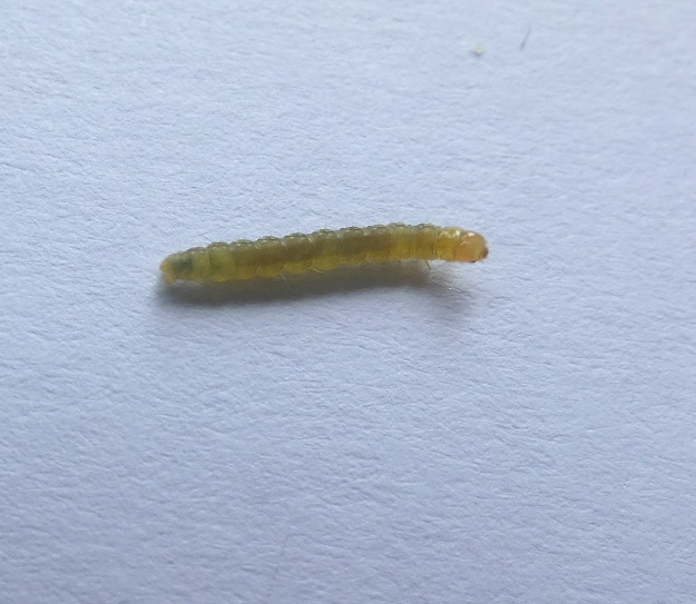 The thing sort of looks like a moth larvae. It's not hairy at all and is out and about quite...