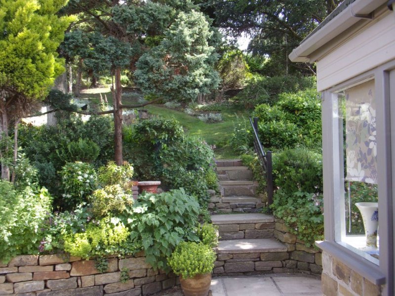 Our site is very steep indeed and I find it to my benefit whilst at the top of the garden; I like to shred as much as possible so...