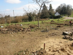 We moved here 18 months ago for a quieter, more relaxed life........ it hasn't worked out that way lol but I am not complaining because I love it here. We are renovating the old barn and making it into our home whilst also trying to do something with the garden and all this on a very tight budget. I started with a blank canvas really as the plot had not been used for several years, it was a very large overgrown, weed infested, bracken ridden snake pit with 2 apple trees stuck in the middle. First thing we did was have a fosse septique fitted which was in the middle of November, which gave us our very own mud bath and a partly overturned garden.... well at least there weren't as many weeds now! Next I tried to give the garden some definition by creating areas for seating, for planting flower beds and for veggies whilst also trying to create some protection against the wind. We also got donated a lot of chickens in the midst of our endeavours and had to create a temporary chicken hut to house them in. Now I have taken a rest from the house renovating and I am concentrating more on the garden and trying to grow some vegetables and fruit. I will try to how pictures of the various stages but it wasn't always in my head to take the photo's.