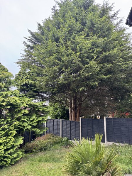 Hi there back again sorry! Making progress with this all but back now to ask about the neighbours tree and trimming it back slightly at least the lower branches I can reach. However I'm aware the law says I can do this, and must ask them if they want their branches back before disposing etc. However I've also read that if I did cut branches on my side and they ignore it / leave it and it causes an imbalance and the tree falls I can then be liable? Is there an "easy" way to be sure of what I can / can't cut back? I know I can't just trim direclty up the boundry (legally yes but pratically its not plausable) and I know it can be hard just from the photo there but trimming the lower branches that overhang should be okay right? As much as I like trees I wont lie this huge connifer sucks, its dropped dead leaves on my garden killing most things under it, under heavy wind it has a hell of sway which makes me nervous I wont lie (moreso as their other connifer of similar size (albeit 1 trunk vs 4) fell in a storm... and then the canopy as a whole does take up quite alot of space I won't lie. I would speak to them about it, but the neighbour is renting and barely answers the door to anyone from what I've experienced and being a renter I'm not sure really what they can do about it (and the rest of the garden from what I can see is pretty much ignored)