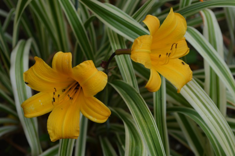 Spruces daylilies