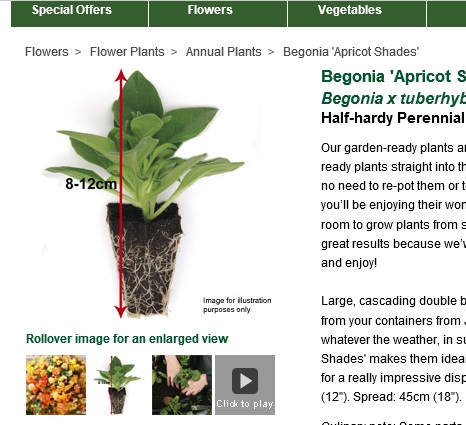 The base of a plant is normally where the stem meets the soil, not the underside of the roots, meaning that unless you click on the plug thumbnail and get the additional info displayed the plants could be half the size you expect.