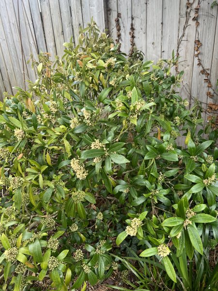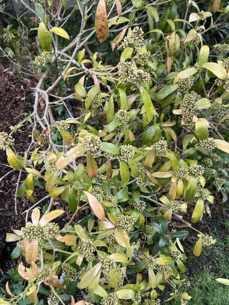 well established Skimmia popping its clogs
